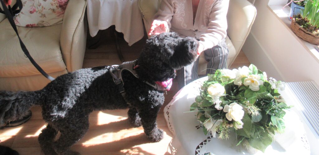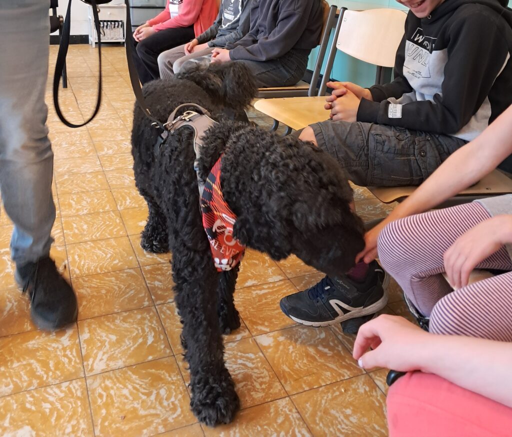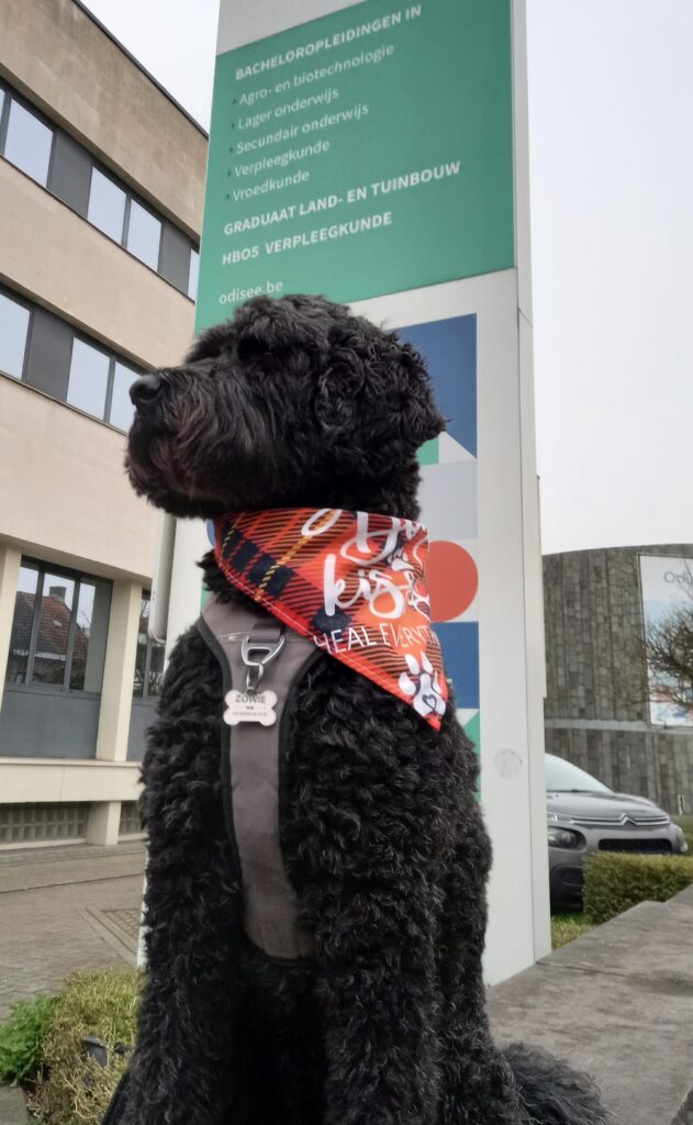 Ook als bewoners niet uit hun bed kunnen komen, zijn er allerhande activiteiten mogelijk! Zowie tijdens een DOE-sessie in een lagere school: de kinderen weten perfect hoe je kennismaakt met een hond! Zowie op kamerbezoek in een woonzorgcentrum. Zowie is klaar om studerende jongeren een hart onder de riem te steken tijdens een blitsbezoekje aan een hogeschool. Zowie ‘in actie’ tijdens een doordeweekse lesdag. Een duo-wandeling buiten het woonzorgcentrum.